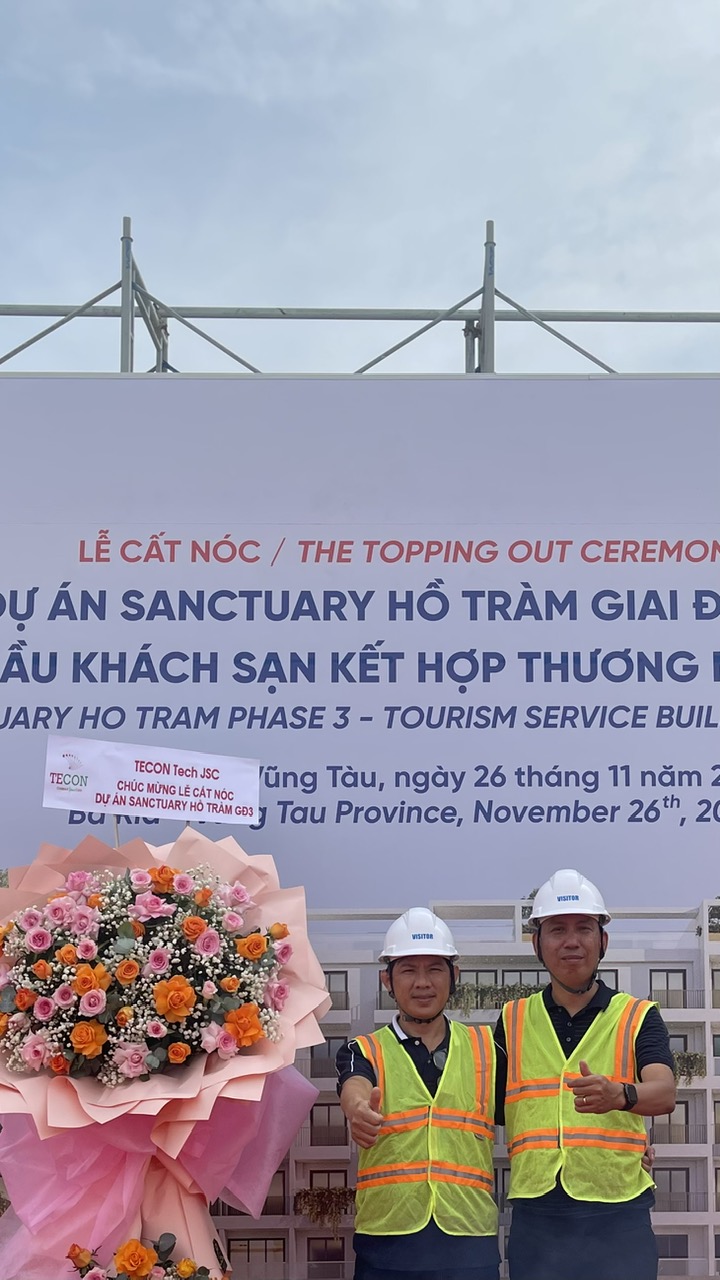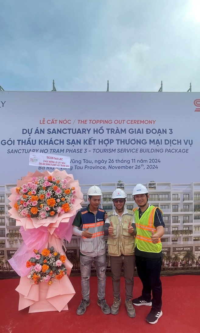 Sáng ngày 26/11/2024, TECON - Đơn vị nhà thầu MEP phối hợp cùng Chủ Đầu Tư và Tổng thầu tổ chức lễ cất nóc dự án SANCTUARY Tourist Building tại huyện Xuyên Mộc, tỉnh Bà Rịa - Vũng Tàu. Dự án được khởi công từ tháng 06/2024, sau khi hoàn thiện dự kiến bàn giao trong quý 2 năm 2025.
